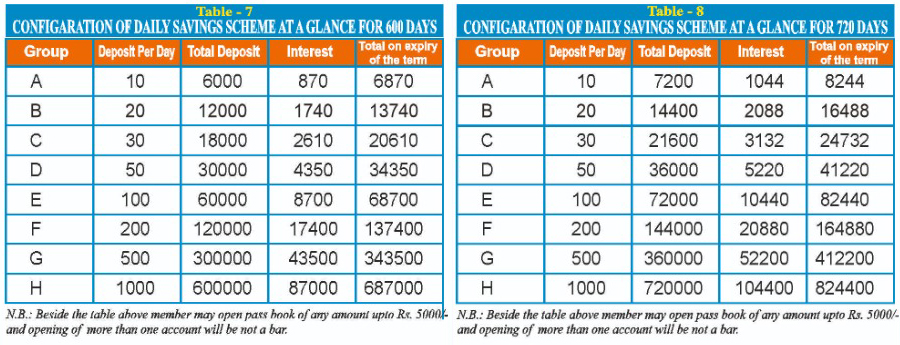 - The Member Account Holder shall surrender the passbook and duly signed application to the company and the maturity shall be paid along with interest as per the above-mentioned Chart. No additional interest would be paid on the maturity amount, if taken after the scheduled period.
